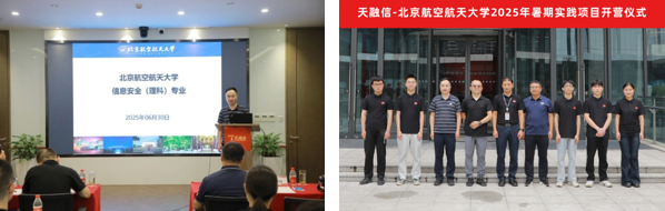 自2025年6月以来,北航数学学学院通过调研走访、师生交流和协议洽谈等多种形式与天融信科技集团共同推进校外人才培养基地的建设。