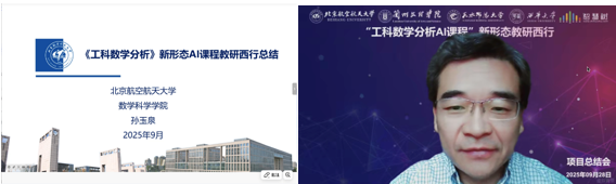 2025年9月28日,由北京航空航天大学williamhill官网牵头,联合兰州文理学院教育学院、天水师范大学数学与统计学院、西华大学理学院共同参与,智慧树网提供技术支持的“工科数学分析AI课程教研西行项目”总结会于云端圆满举行。四所项目院校的领导、教师代表与项目团队齐聚线上,共同回顾了一年来的丰硕成果,展望AI赋能数学教育的美好未来。