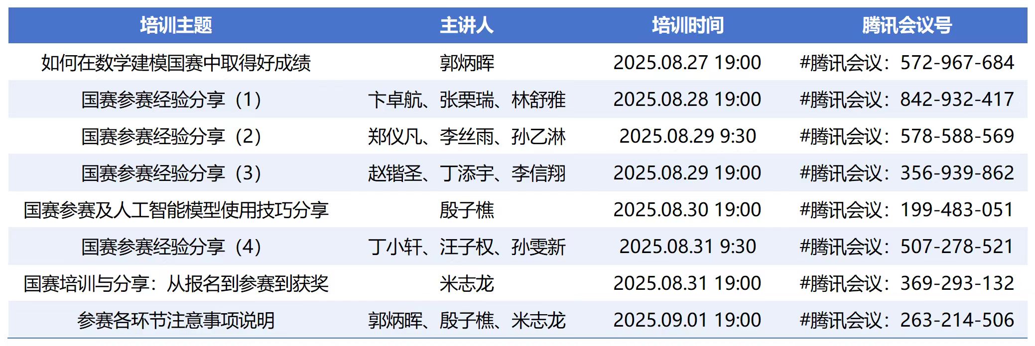 数模赛前线上培训安排